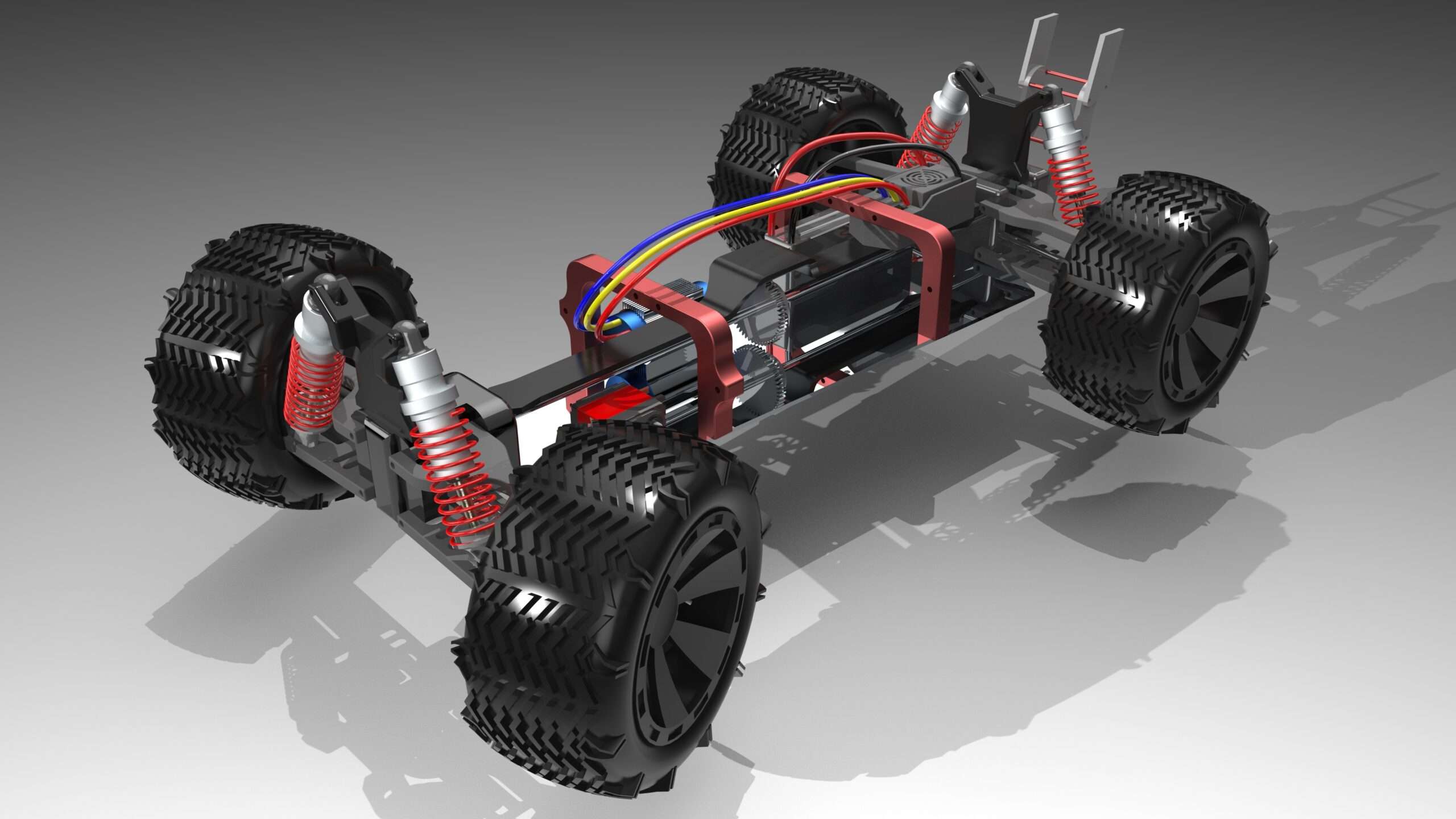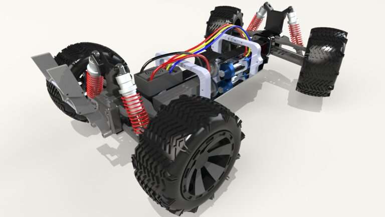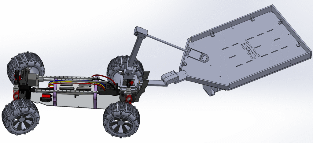 Designed in SolidWorks > Simulated ART Vehicle with Chrono Vehicle > exported the data (Position & Orientation) of the wheels and body, and imported those into Blender for a high-resolution render.